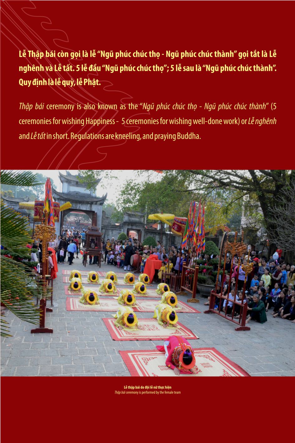 Lễ Thập bái còn gọi là lễ “Ngũ phúc chúc thọ - Ngũ phúc chúc thành” gọi tắt là Lễ nghênh và Lễ tất. 5 lễ đầu “Ngũ phúc chúc thọ”; 5 lễ sau là “Ngũ phúc chúc thành”. Quy định là lễ quỳ, lễ Phật.