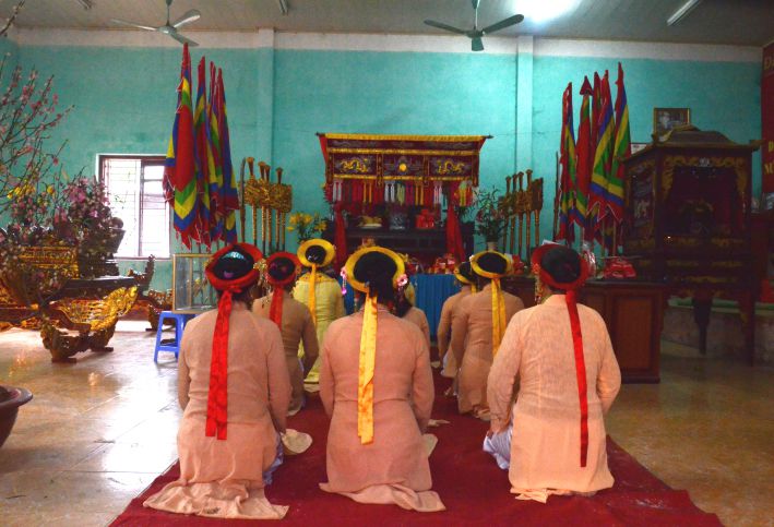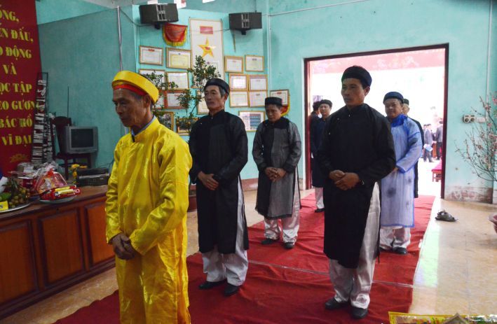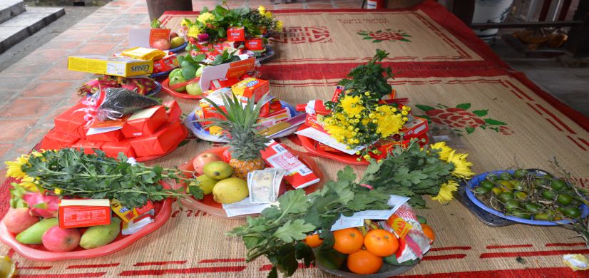 Trước đây việc sửa lễ ngày mùng 6 tháng Giêng gồm 1 con lợn, 2 cỗ xôi, 1 vò rượu, 1 buồng cau (30 quả), hoa quả, cam.