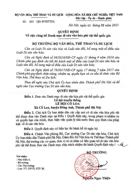 Trải qua thời gian và sự biến động của lịch sử, lễ hội Cổ Loa vẫn tồn tại bền bỉ với các phong tục tập quán, nếp sinh hoạt riêng của mình đã trở thành lá chắn để chống lại sự đồng hóa từ bên ngoài, bảo tồn bản sắc văn hóa vùng cố đô xưa.