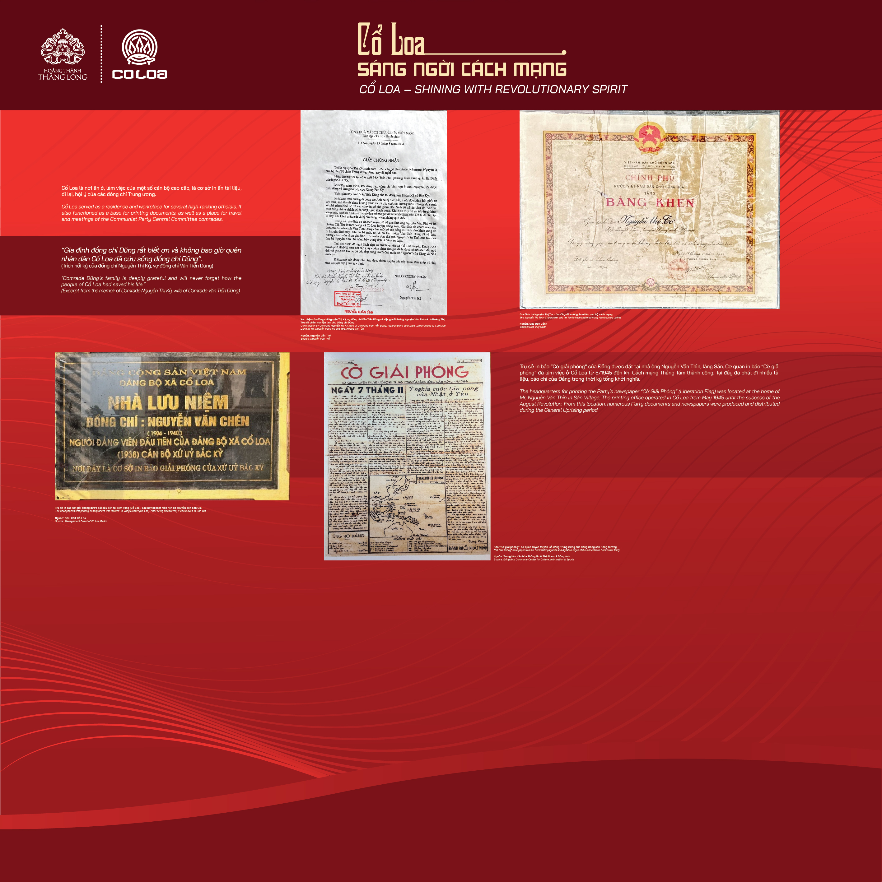 Cơ quan in báo “Cờ giải phóng” đã làm việc ở Cổ Loa từ 5/1945 đến khi Cách mạng Tháng Tám thành công. Tại đây đã phát đi nhiều tài liệu, báo chí của Đảng trong thời kỳ tổng khởi nghĩa.