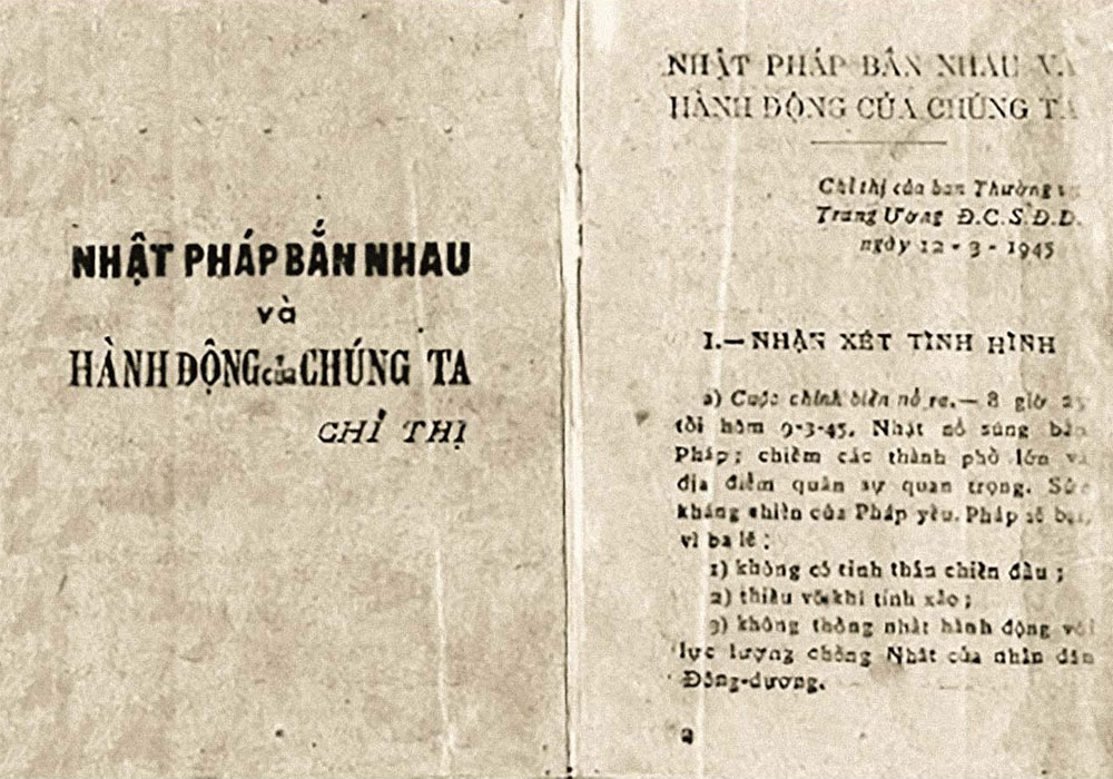 Chỉ ba ngày sau (12/3/1945), Ban thường vụ Trung ương Đảng ra chỉ thị “Nhật - Pháp bắn nhau và hành động của chúng ta”,