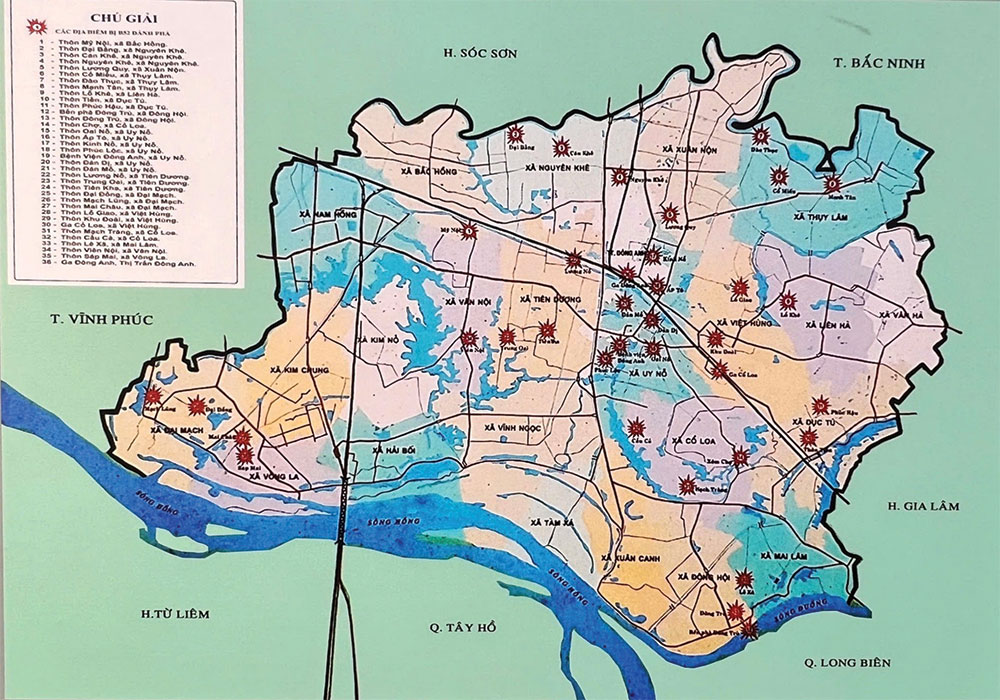 Bản đồ các địa điểm bị B52 đánh phá trong 12 ngày đêm cuối tháng 12/1972 tại Đông Anh
